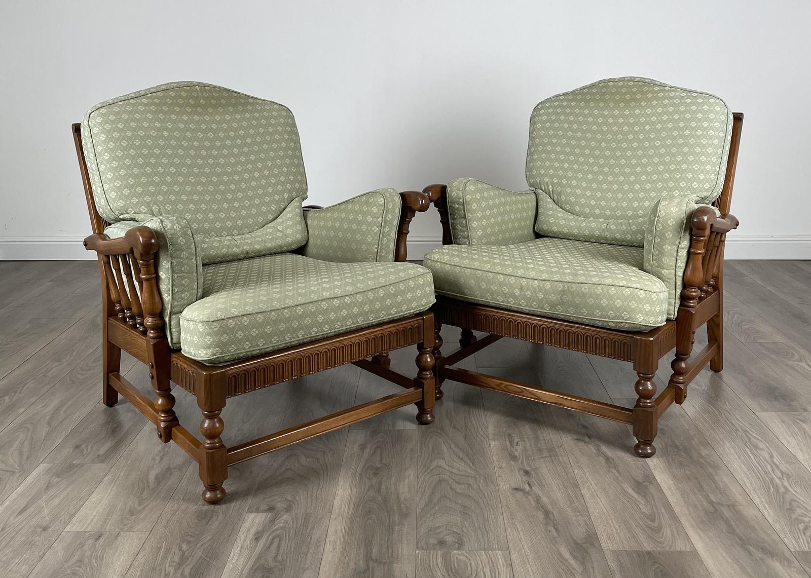 Pair of 20th Century Ercol Armchairs in Oak (1 of 13)