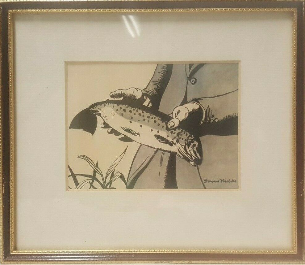 Pair of 20th Century Pen & Ink Fish Paintings Signed Bernard Venables