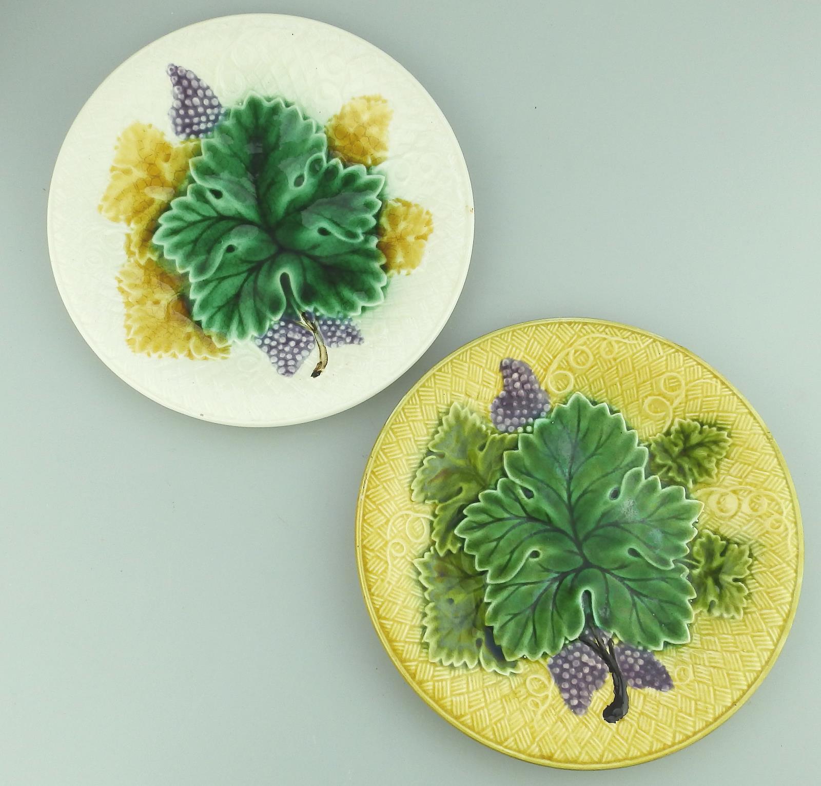 Pair of 2X Victorian Majolica Pottery Cabbage Ware Dessert Plates 19th Century