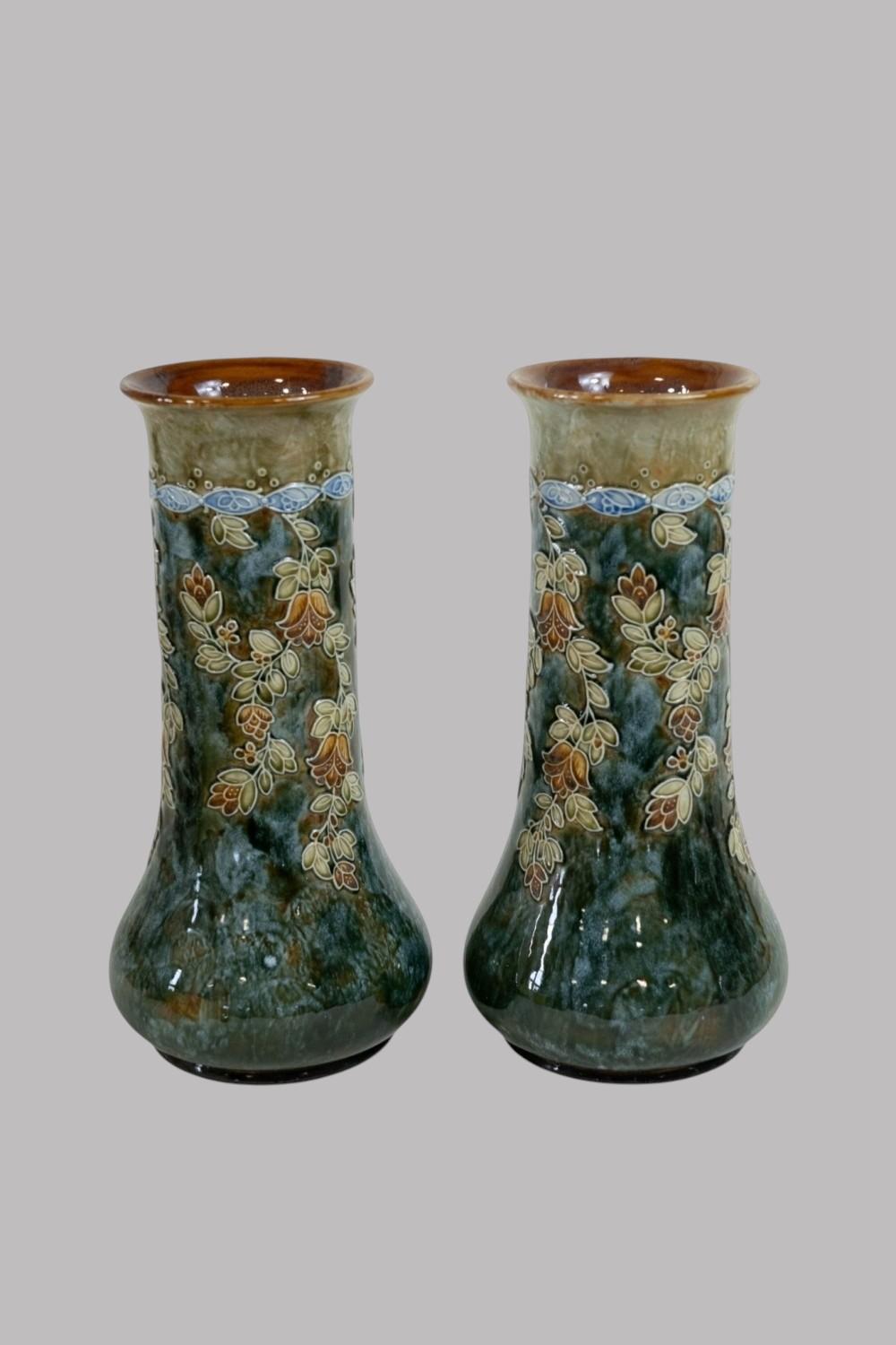Pair of 33cm Doulton Lambeth Vases
