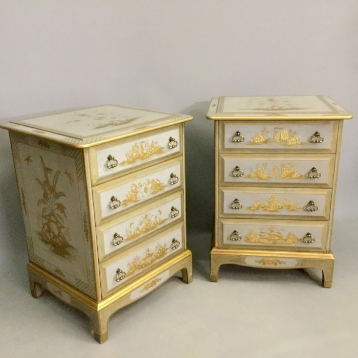Pair of 4 Drawer Chinoiserie Side Cabinets