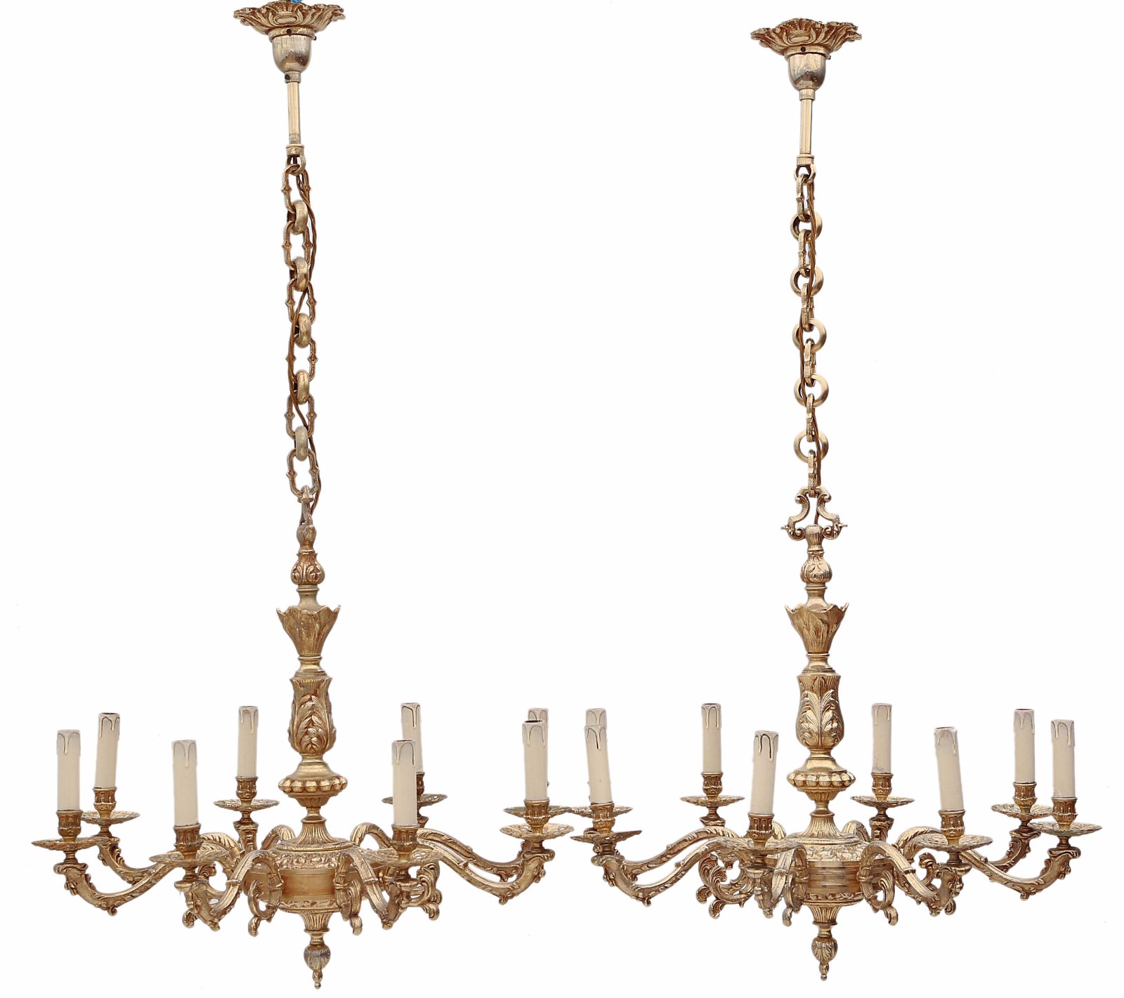 Pair of 8 Lamp Brass Ormolu Chandeliers FREE DELIVERY