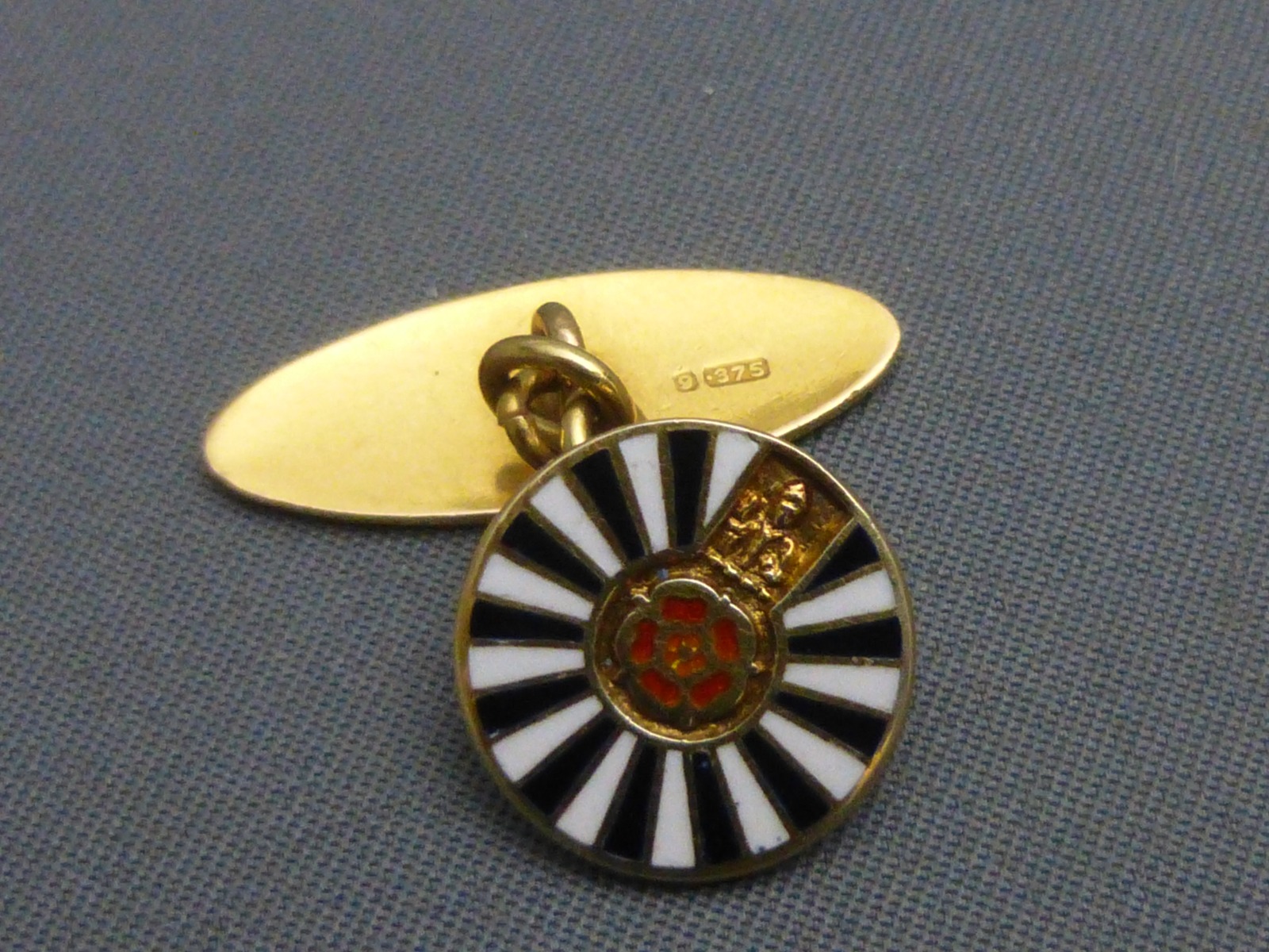 Pair of 9ct Gold & Enamel Round Table Cufflinks