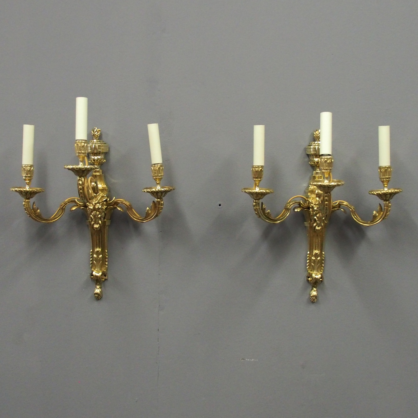 Pair of Adams Style Cast Brass & Gilded Wall Sconces c.1870