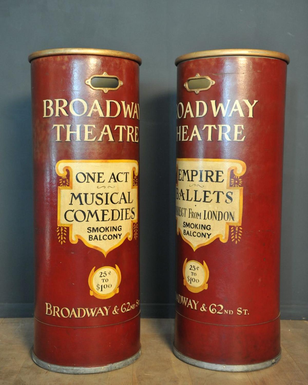 Pair of advertising tubes for the Broadway Theatre