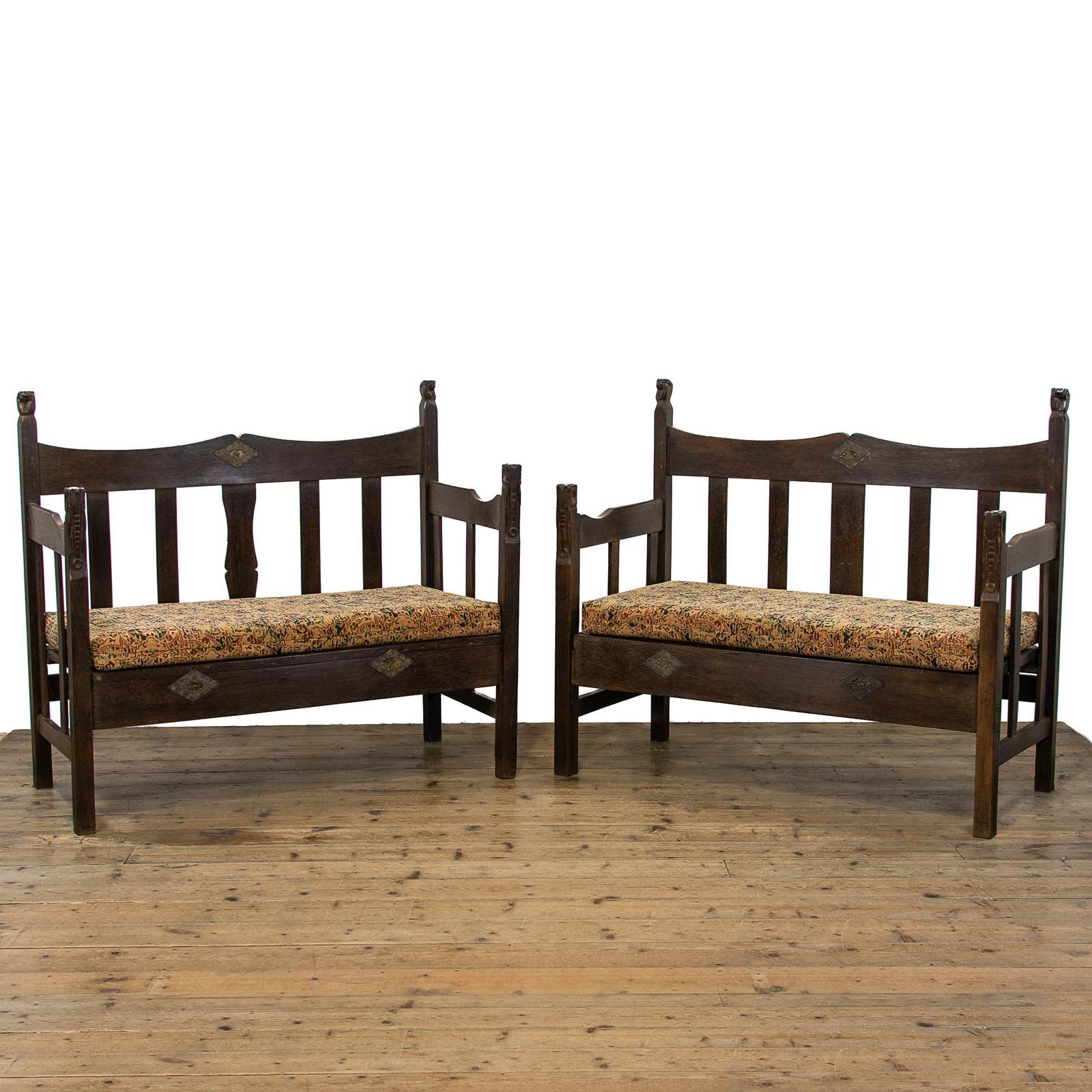 Pair of African Antique Benches with Loose Tapestry Cushion
