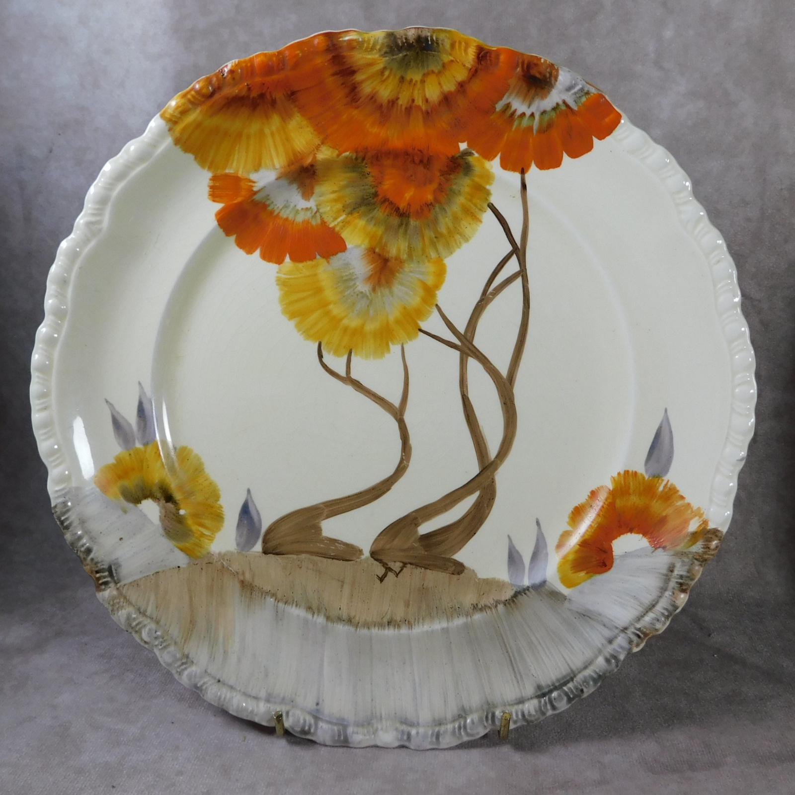 Pair of AJ Wilkinson Ltd, Clarice Cliff, Honeyglaze, Rhodanthe Pattern, Dinner Plates