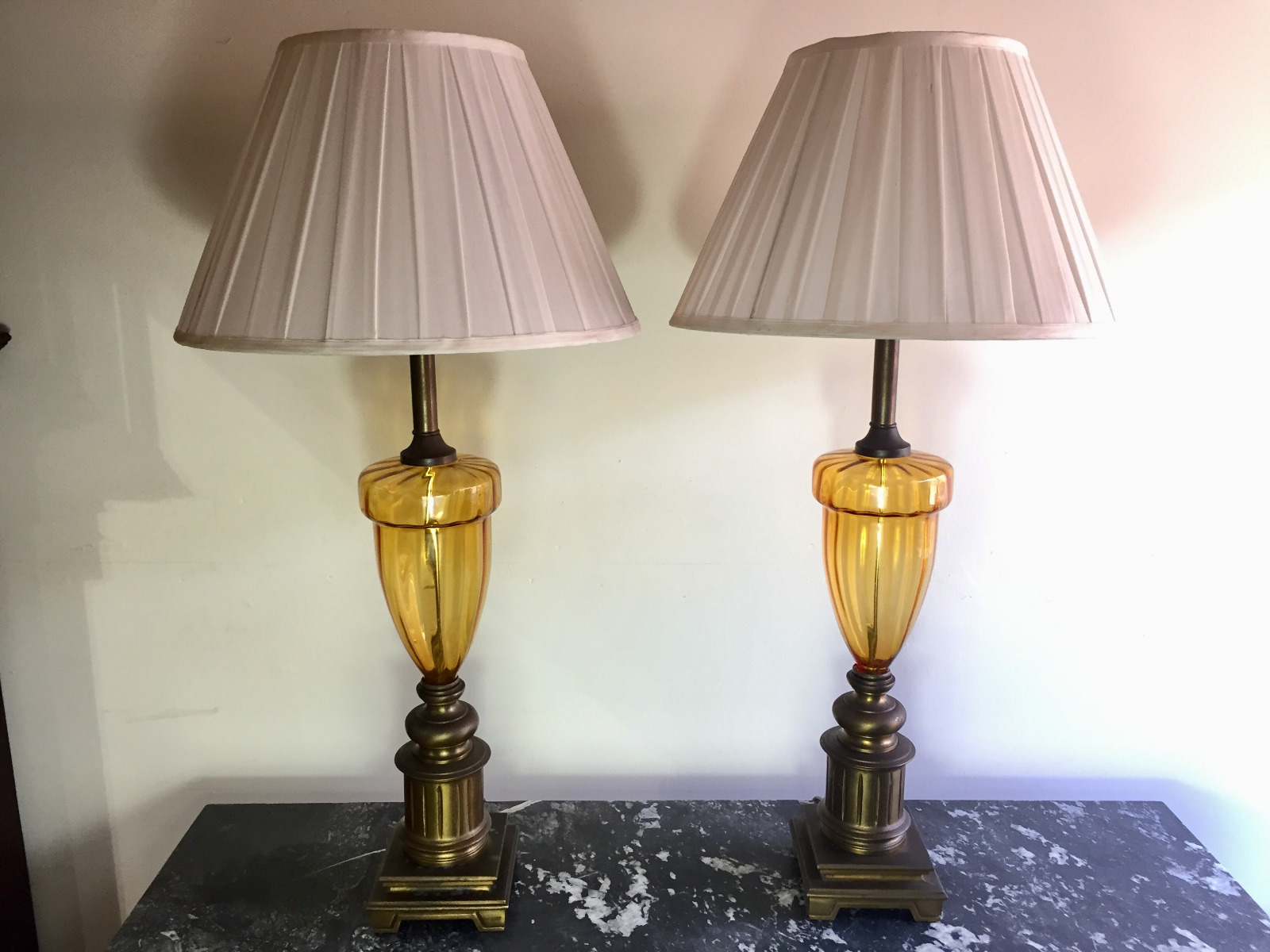 Pair of Amber Glass & Gilt Metal Table Lamps c.1920