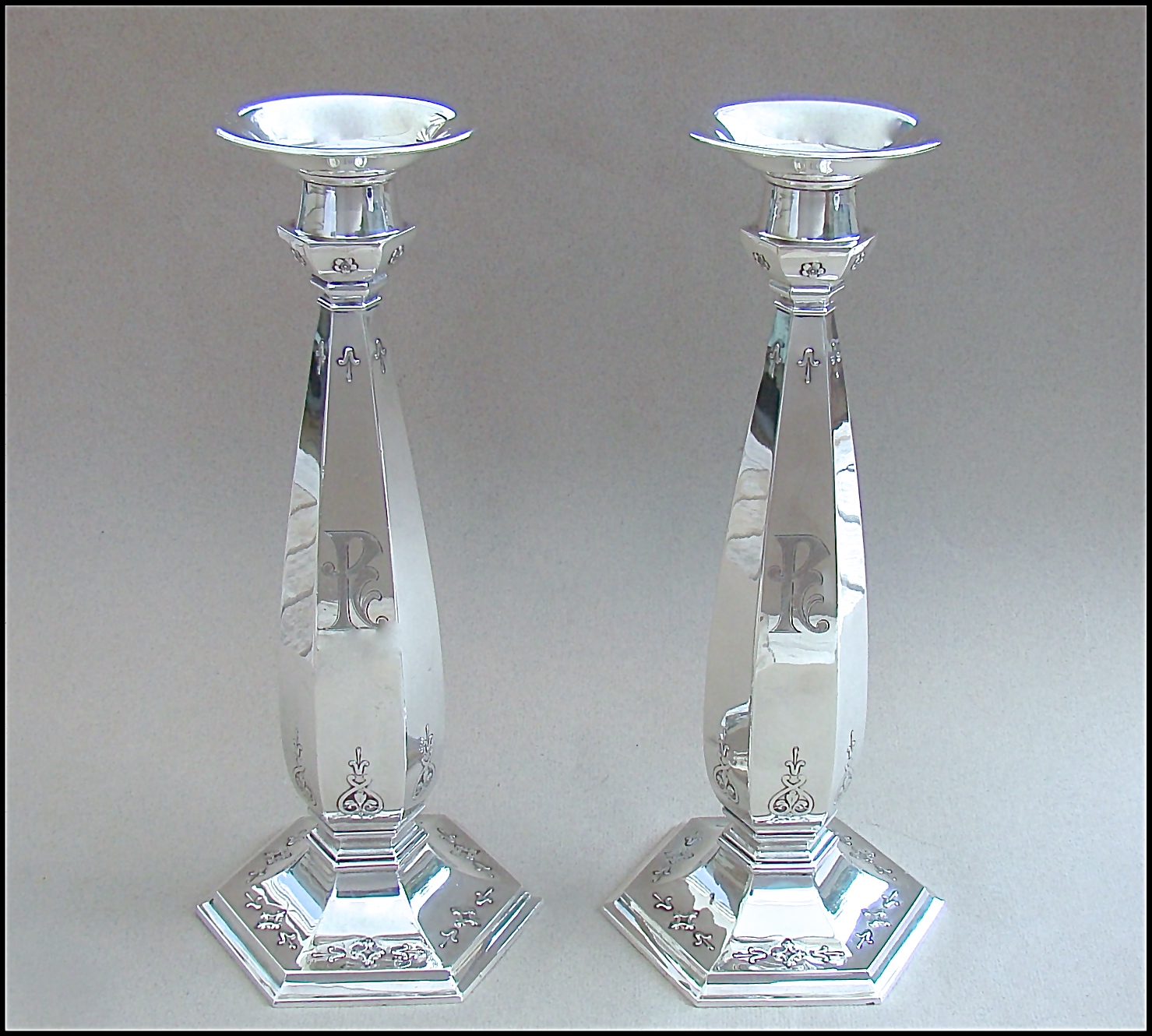 Pair of American Sterling Silver Candlesticks by the Whiting Manufacturing Company, New York 1919