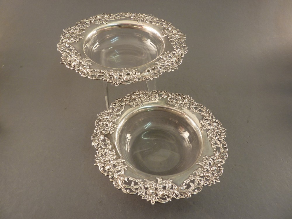 Pair of American Sterling Silver & Glass Bottle Coasters
