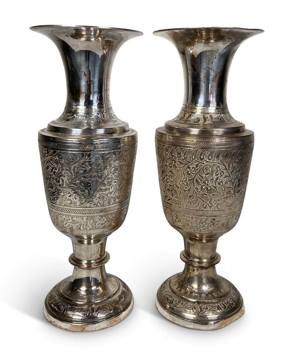 Pair of Anglo Indian Silver Plated Vases