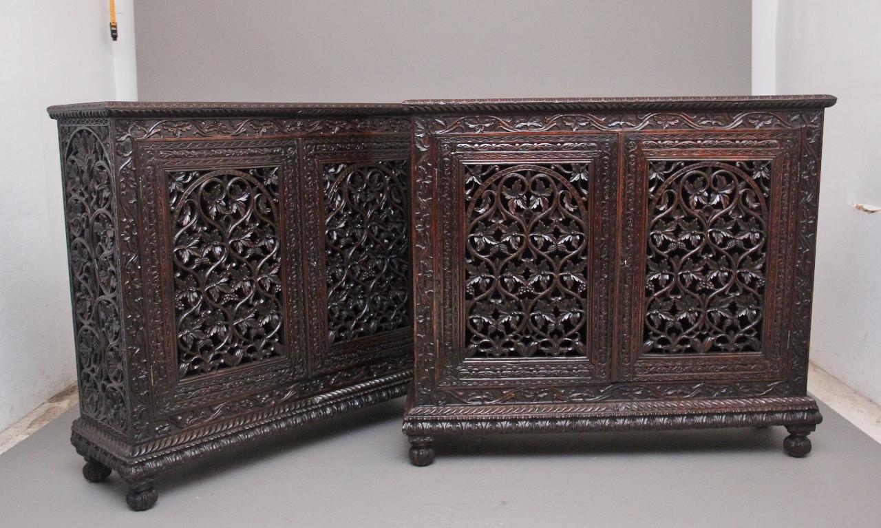 Pair of Antique 19th Century Anglo-Indian Carved Cabinets