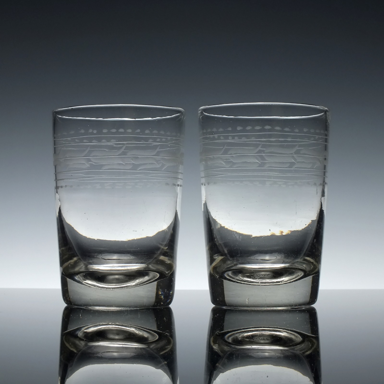 Pair of Antique 19th Century Engraved Glass Tumblers c.1880