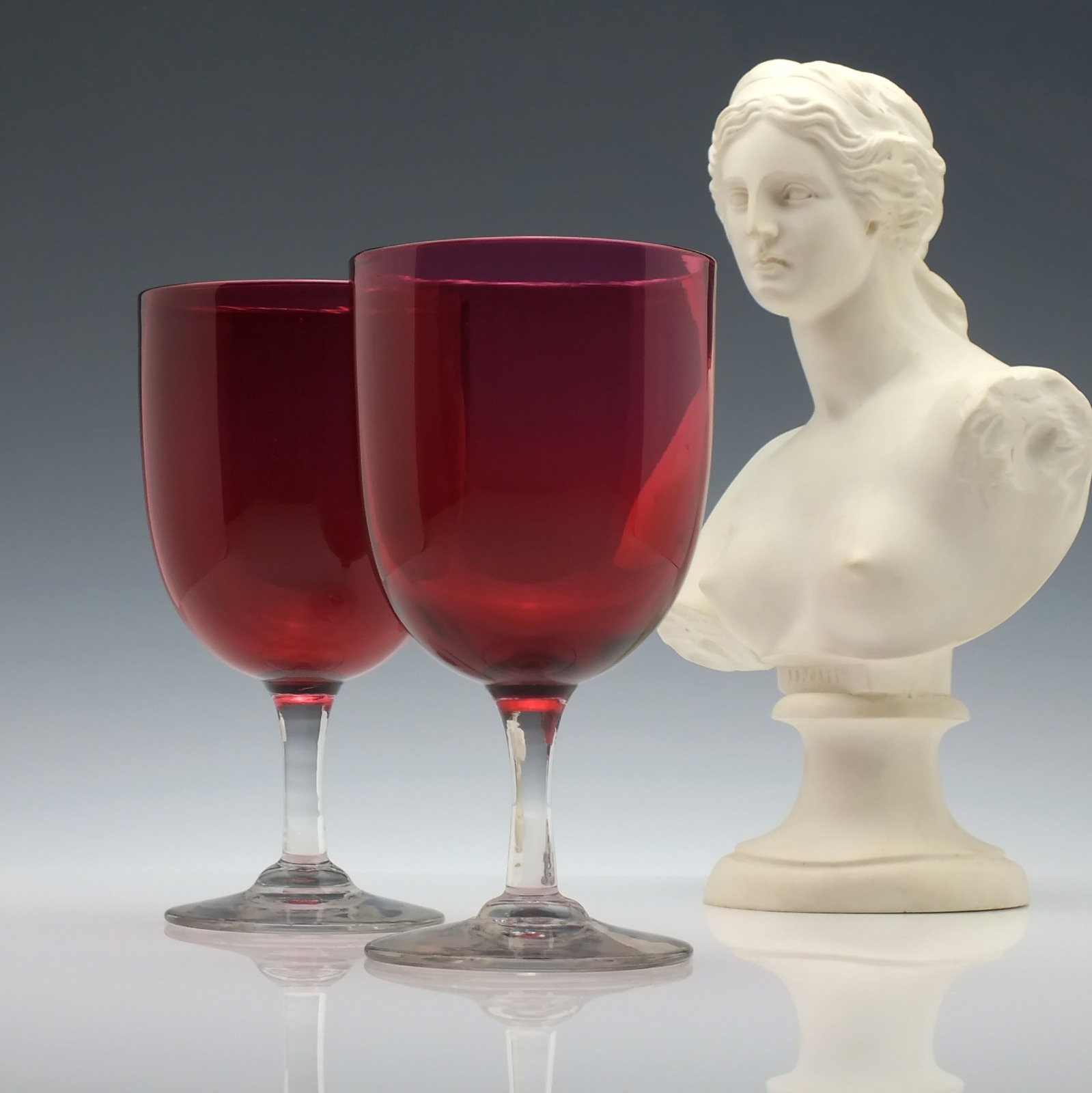 Pair of Antique 19th Century Victorian Cranberry Wine or Water Goblets c.1870