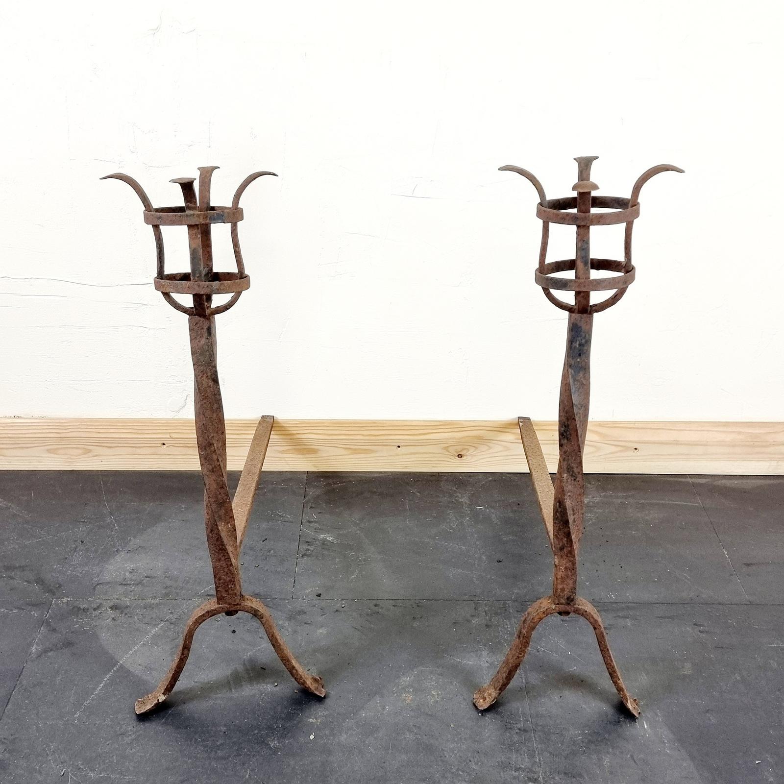 Pair of Antique 20th Century Wrought Iron Firedogs