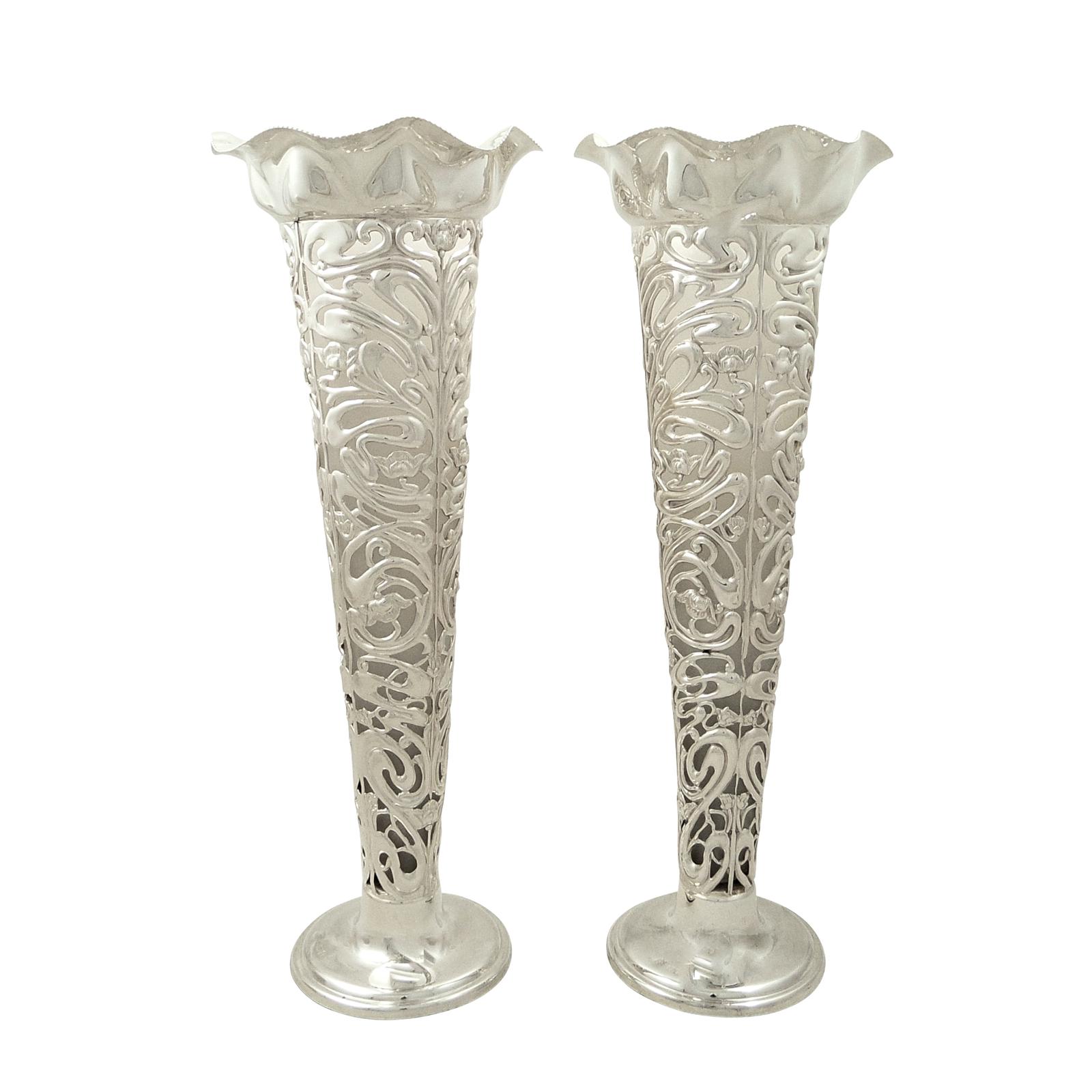 Pair of Antique Art Nouveau Sterling Silver 10 1/2" Vases 1905