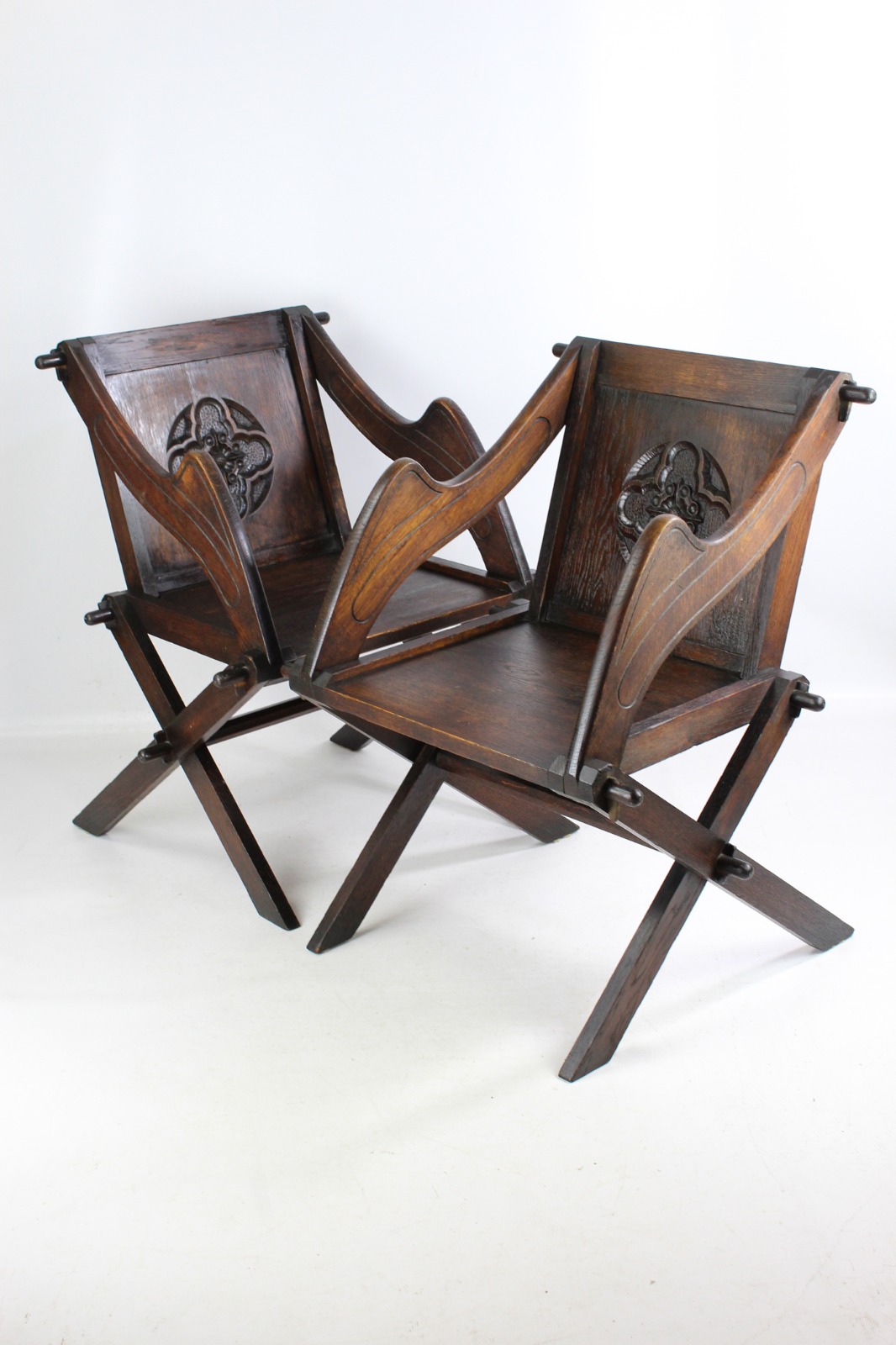 Pair of Antique Arts & Crafts Oak Glastonbury Chairs (1 of 1)