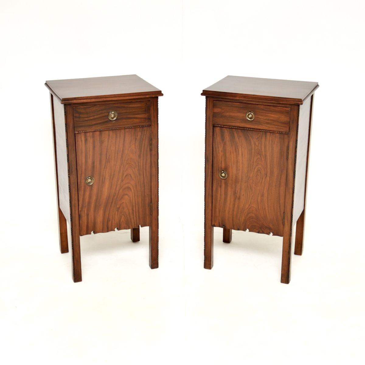 Pair of Antique Arts & Crafts Period Walnut Bedside Cabinets