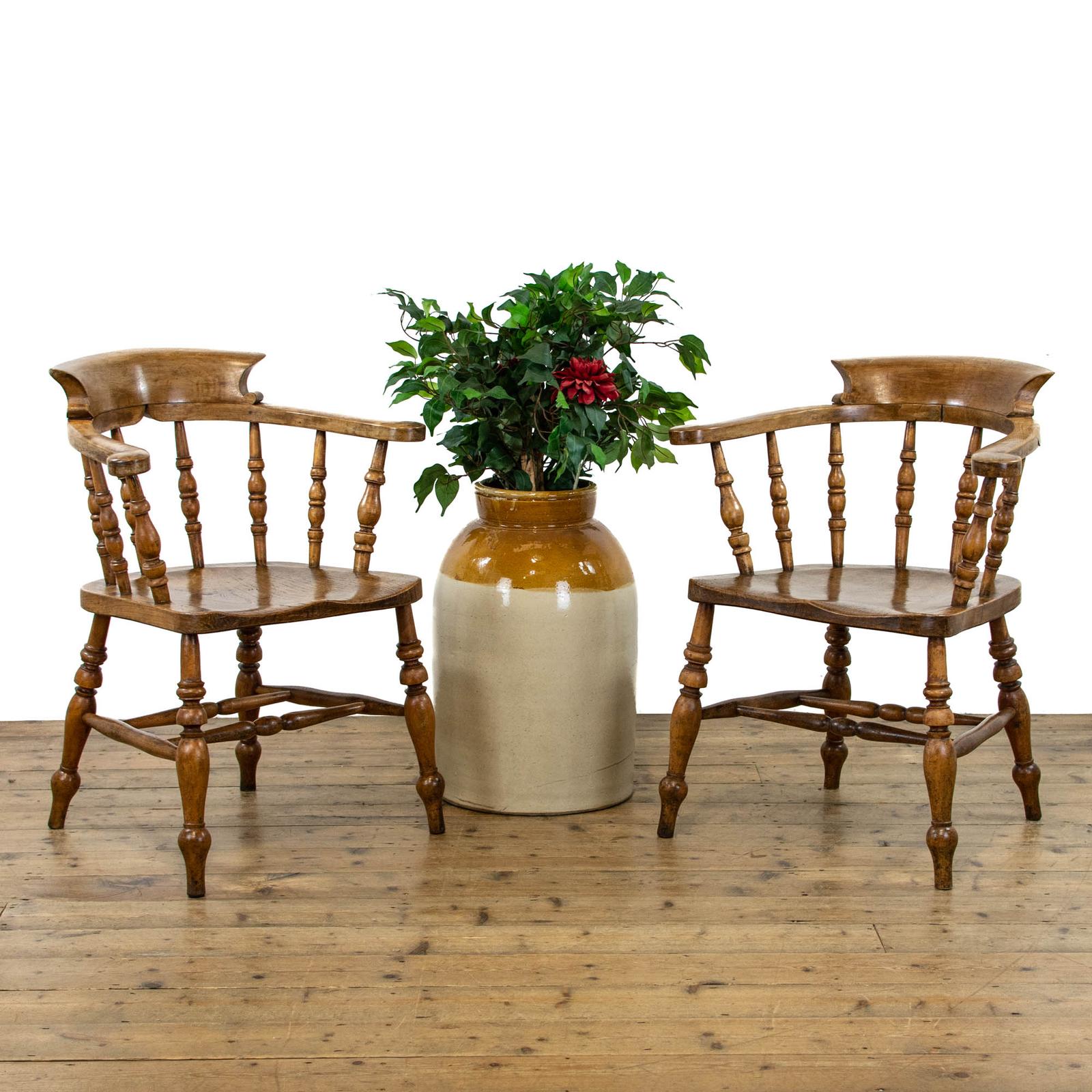 Pair of Antique Beech & Elm Captains Armchairs