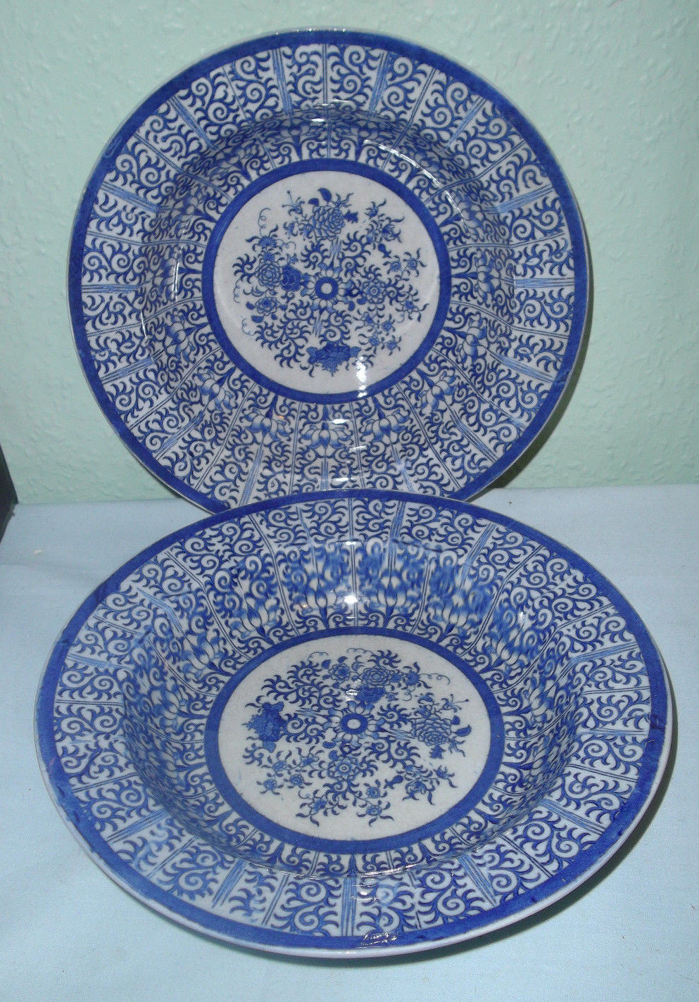 Pair of Antique Blue & White Transfer-Printed Pearlware Pottery Bowls c.1835