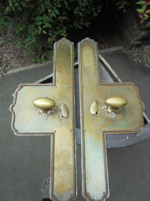 Pair of Antique Brass Door Plates / Door Handles c.1910