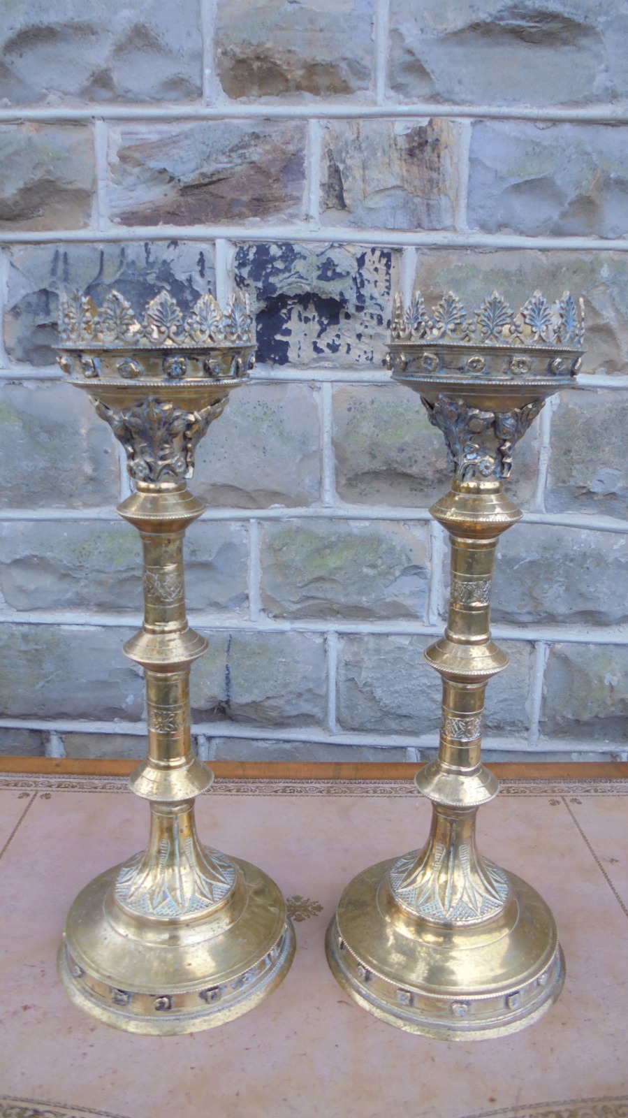 Pair of Antique Brass Ecclesiastical Candlesticks c.1910