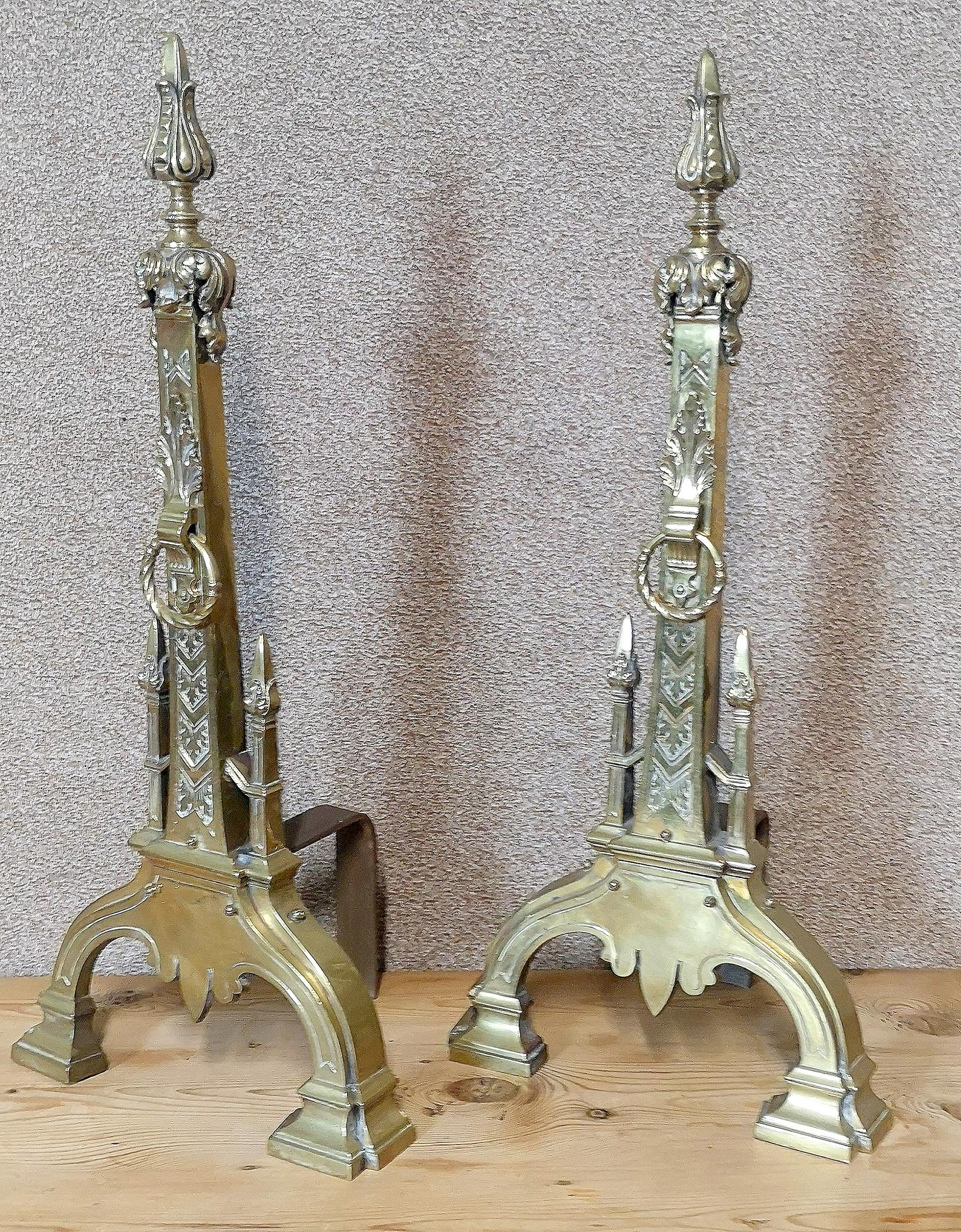 Pair of Antique Brass Fire Dogs / Brass Andirons (1 of 9)