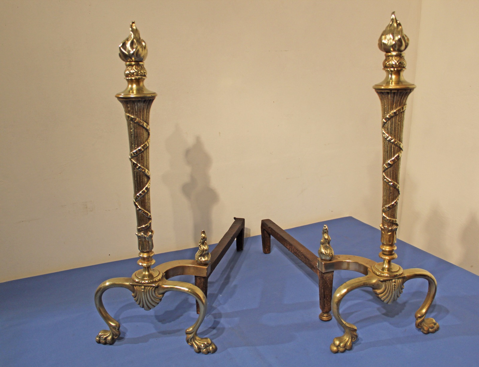 Pair of Antique Brass Fire Dogs - Olympic Torches