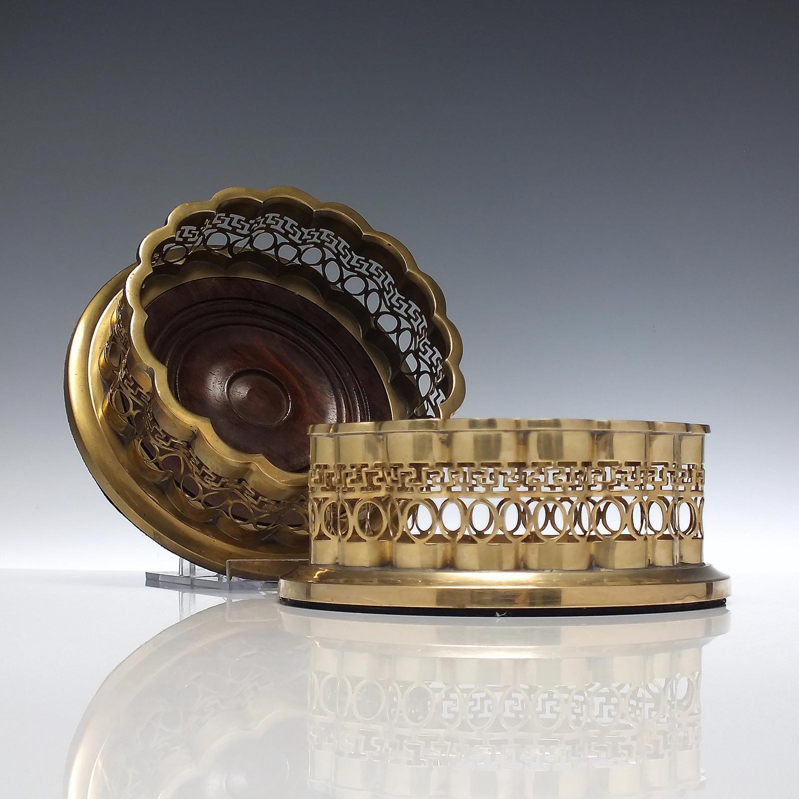 Pair of Antique Brass Greek Key Decanter or Wine Bottle Coasters 1900-1920