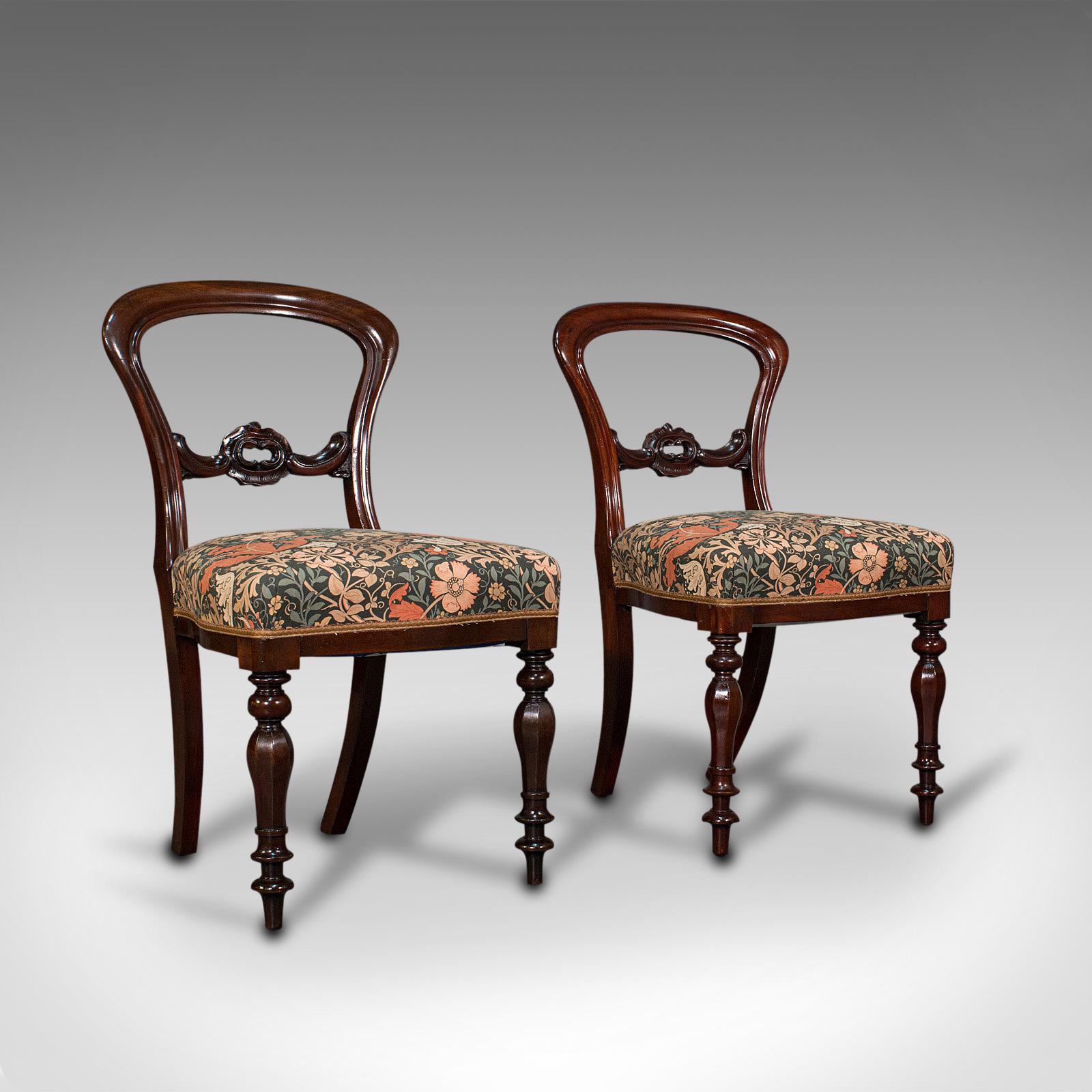 Pair of Antique Buckle Back Chairs, English, Walnut, Dining, Side, Victorian