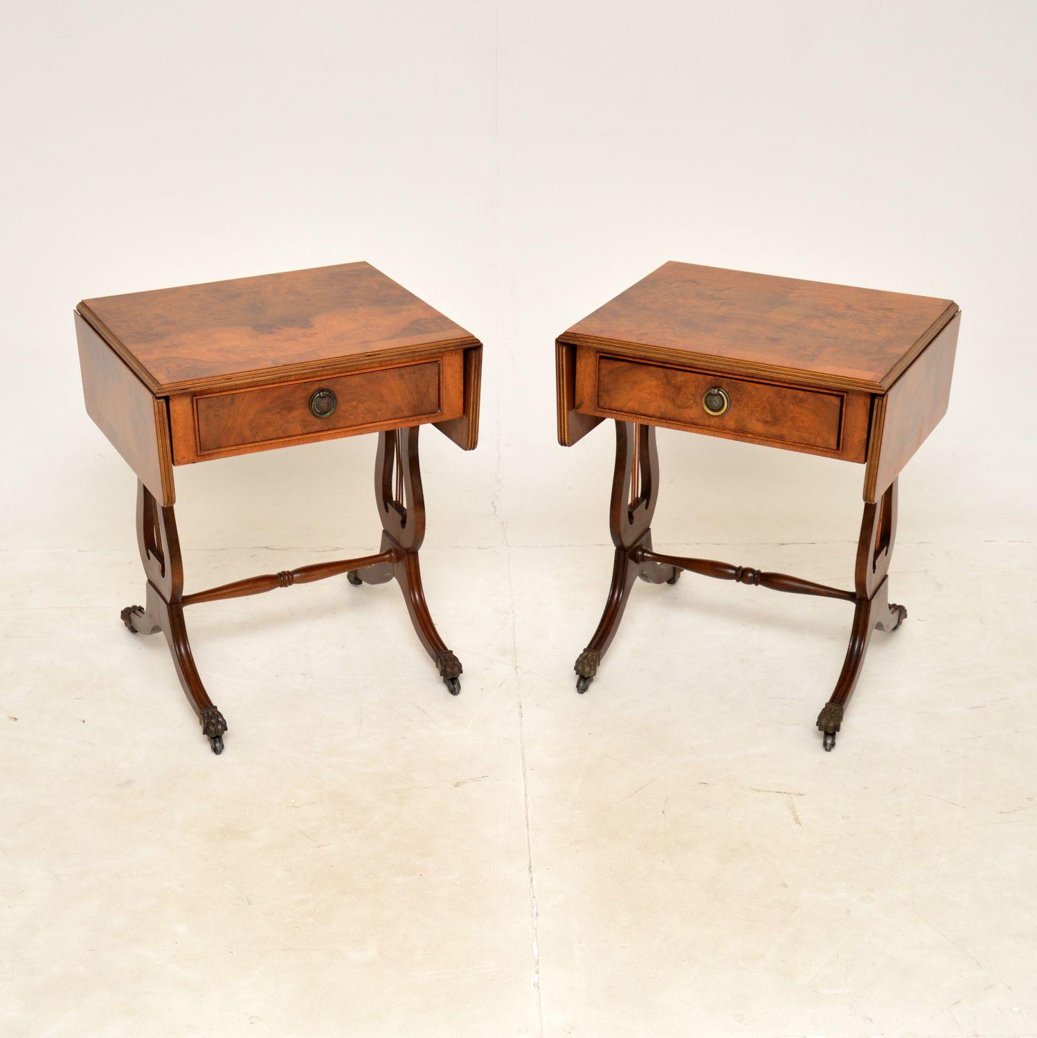 Pair of Antique Burr Walnut Drop Leaf Side Tables