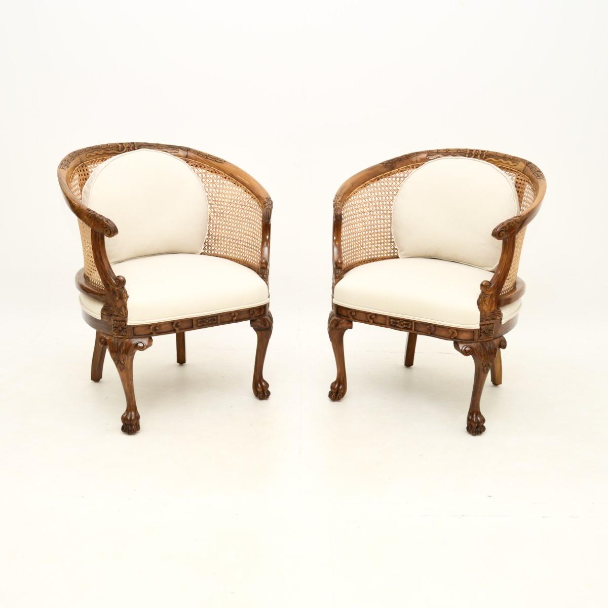Pair of Antique Caned Walnut Bergère Armchairs (1 of 12)