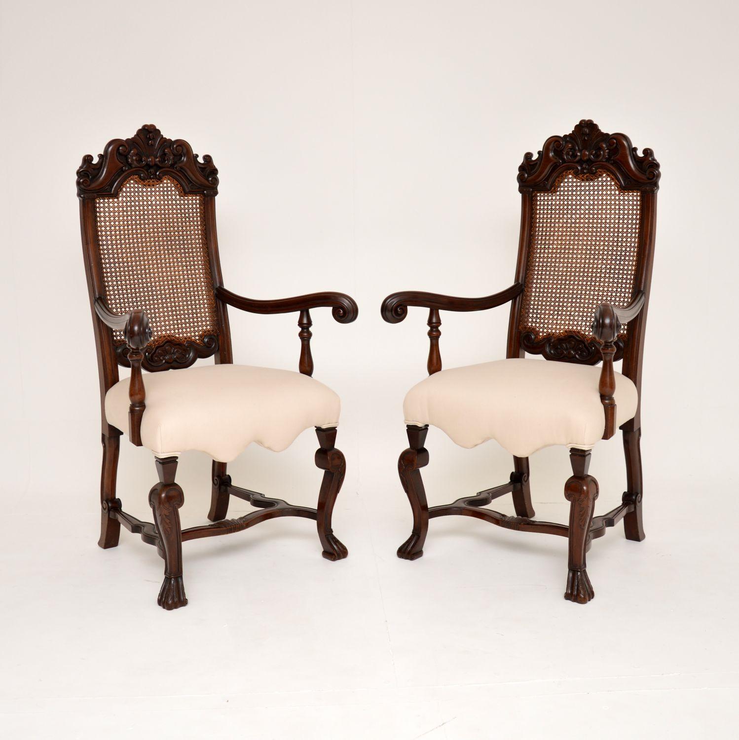 Pair of Antique Carolean Style Carved Walnut Armchairs