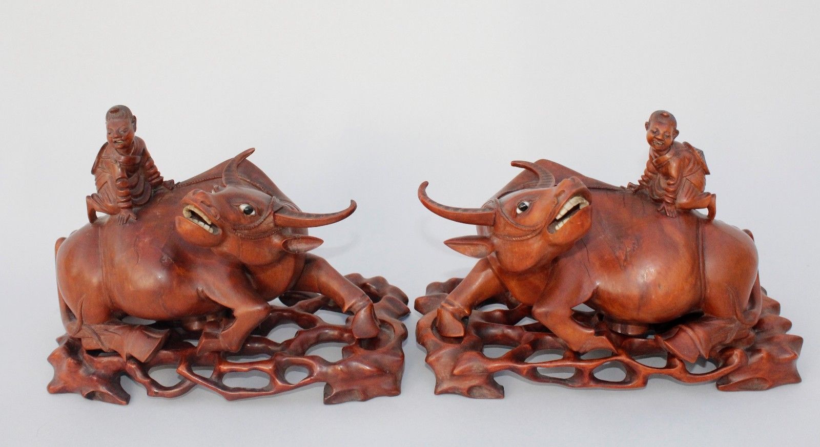 Pair of Antique Carved Hardwood Water Buffaloes (1 of 6)