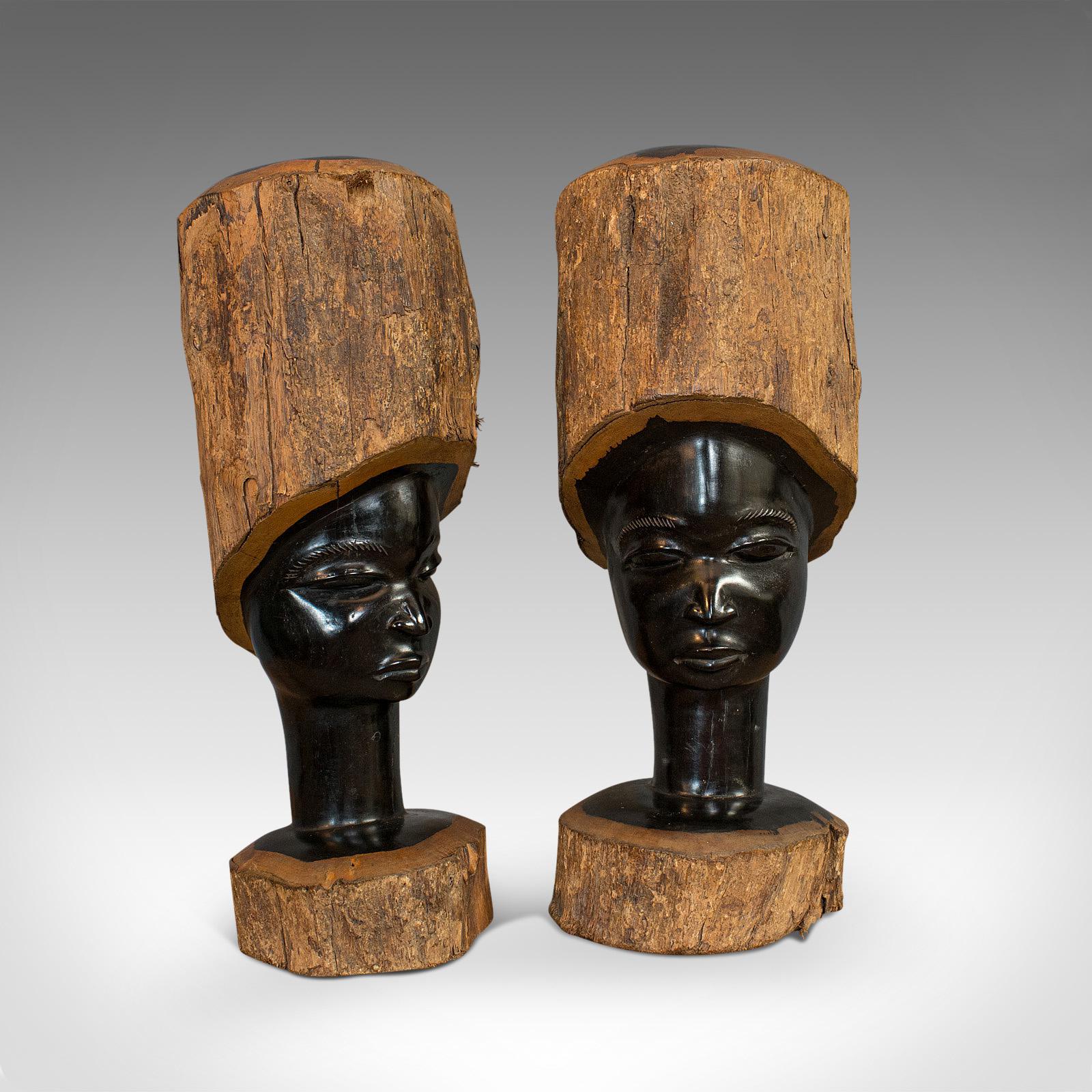 Pair Of, Antique Carved Heads, African, Ebony, Decorative Statue, Victorian