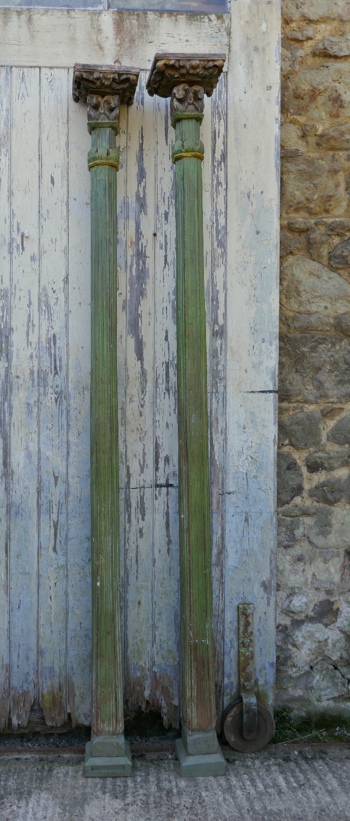 Pair of Antique Carved & Painted Corinthian Type Columns
