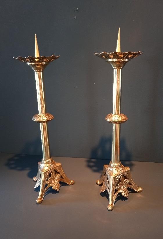 Pair of Antique Cast Brass Pricket Candlesticks