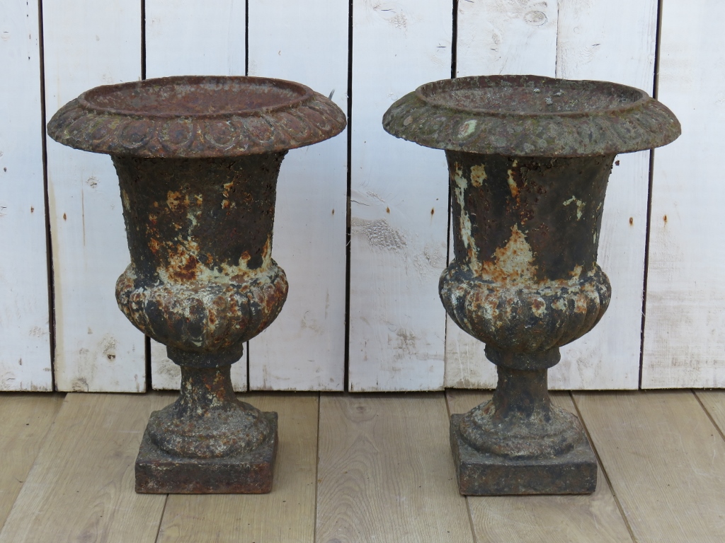 Pair of Antique Cast Iron Urns
