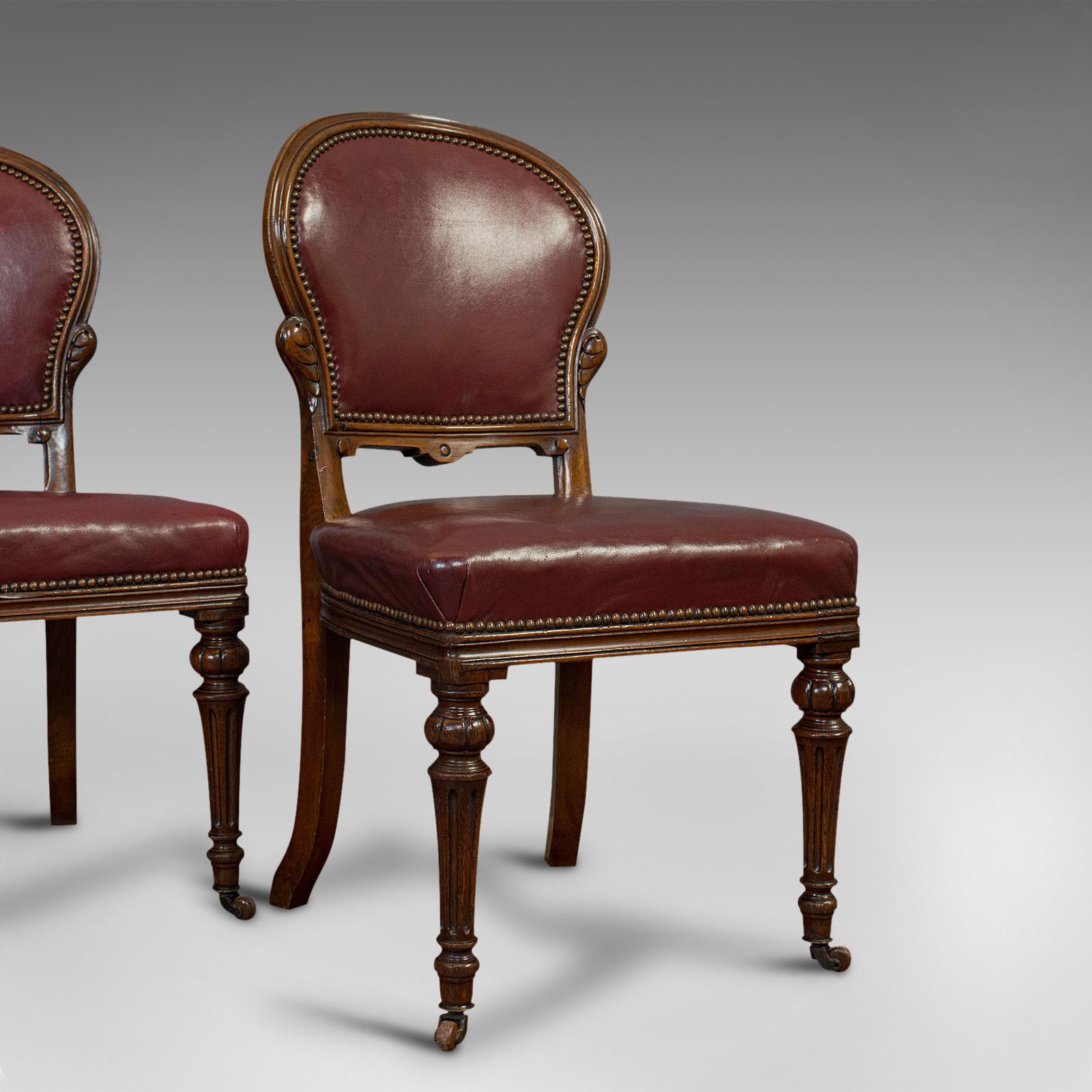Pair of Antique Chairs, Walnut, Leather, Seat, Doveston, Bird & Hull, Victorian