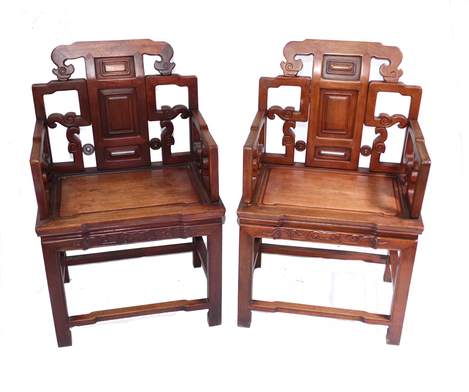 Pair of Antique Chinese Armchairs - Hardwood Seats Interiors
