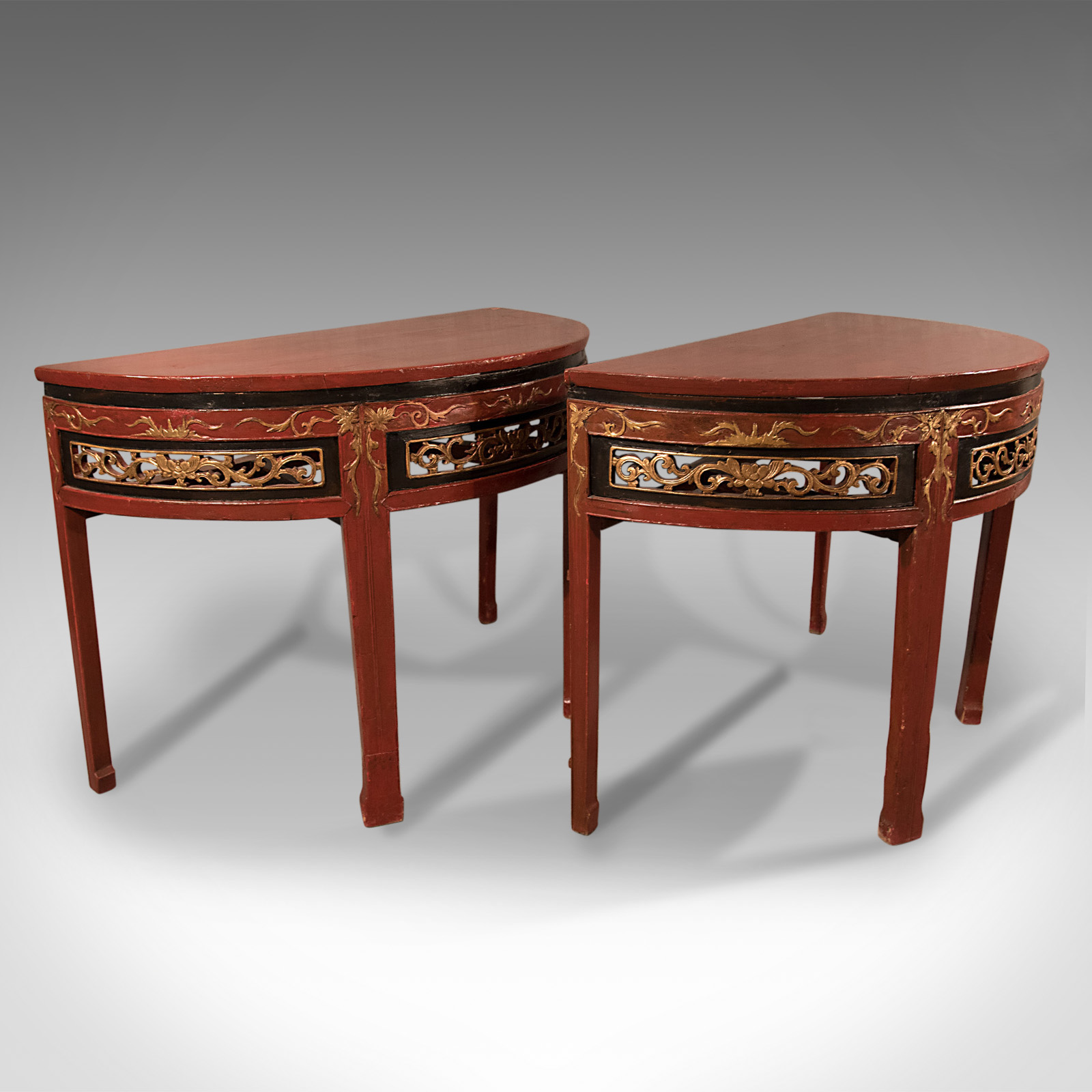Pair of Antique Chinese Demi-Lune Tables, 19th Century c.1850