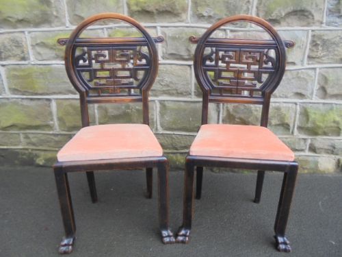 Pair of Antique Chinese Hall Chairs / Side Chairs c.1900