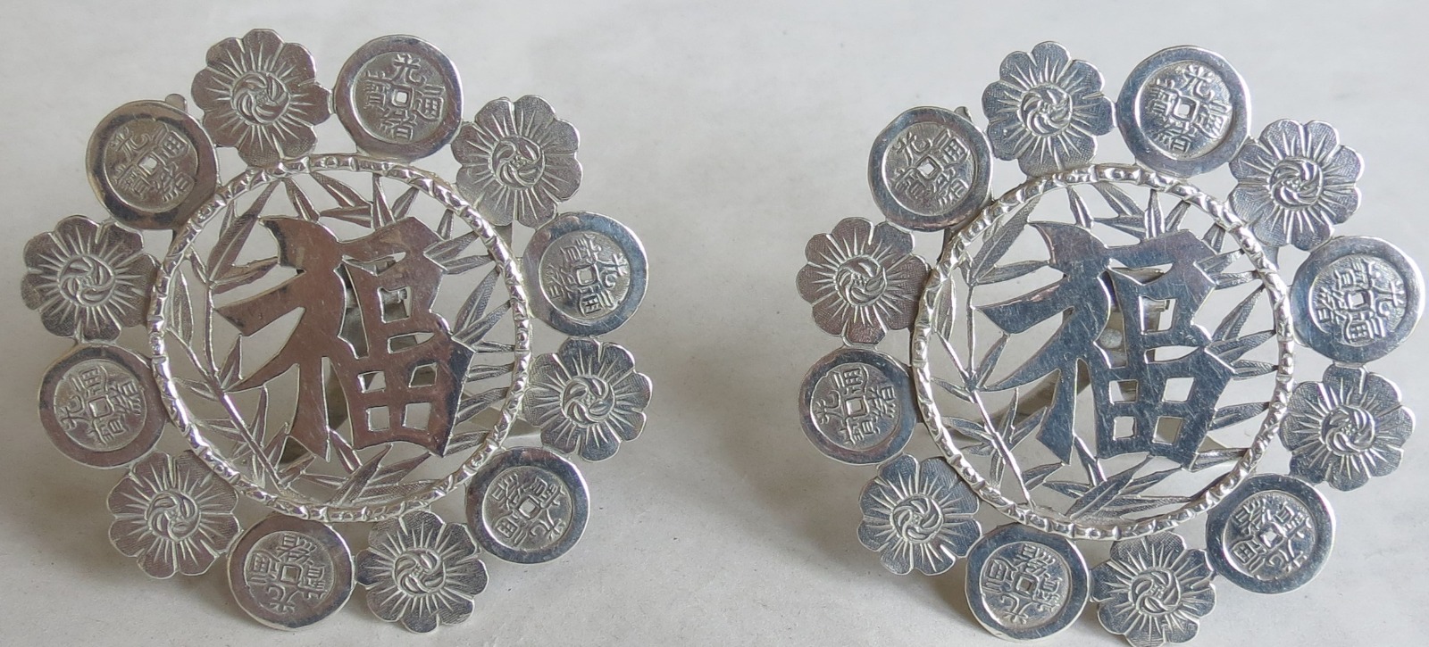 Pair of Antique Chinese Silver Menu-Holders, Maker Luen Hing, Shanghai