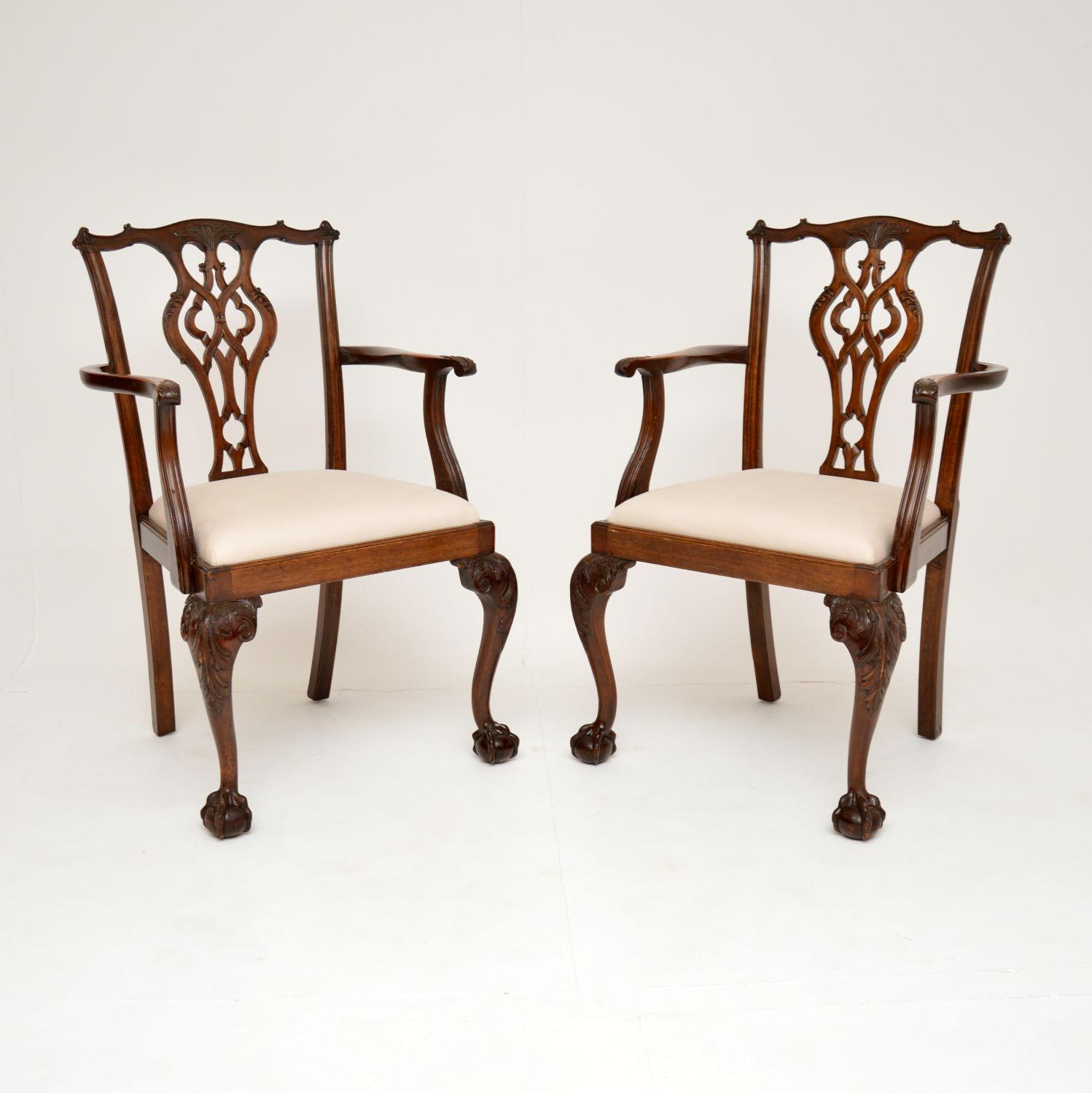 Pair of Antique Chippendale Revival Mahogany Carver Armchairs