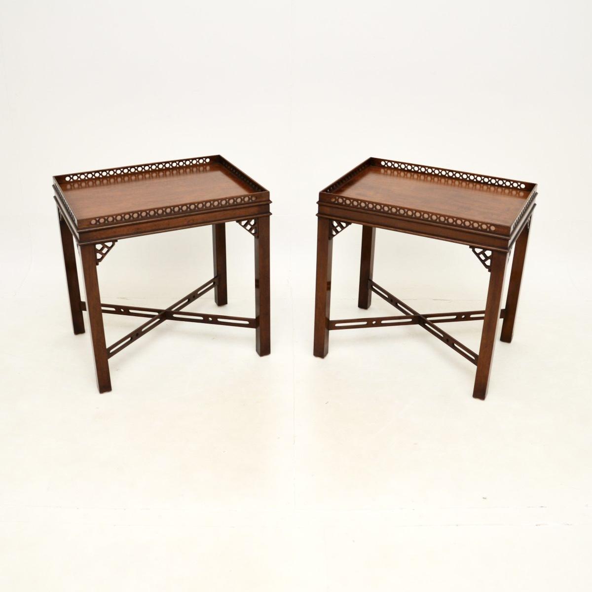 Pair of Antique Chippendale Style Mahogany Side Tables
