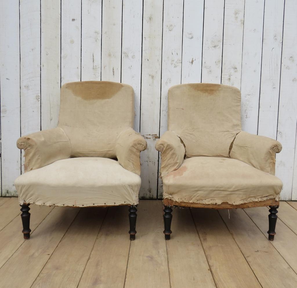 Pair of Antique Deconstructed Napoleon III Armchairs