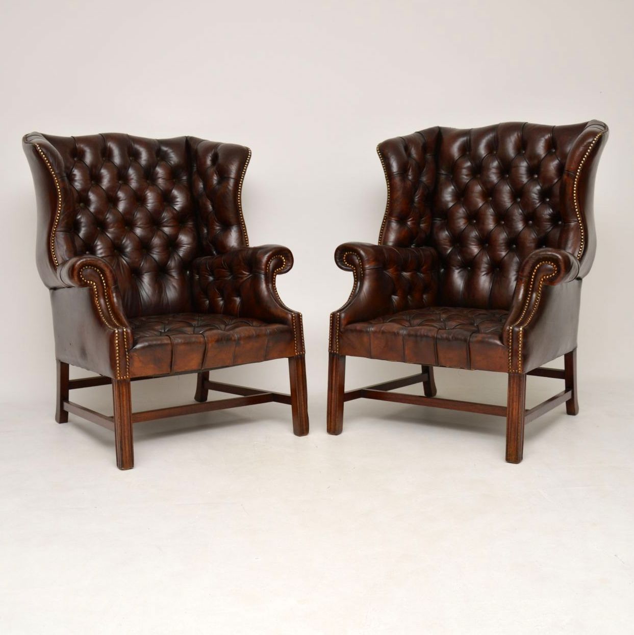Pair of Antique Deep Buttoned Leather Wing Back Armchairs c.1890 (1 of 1)