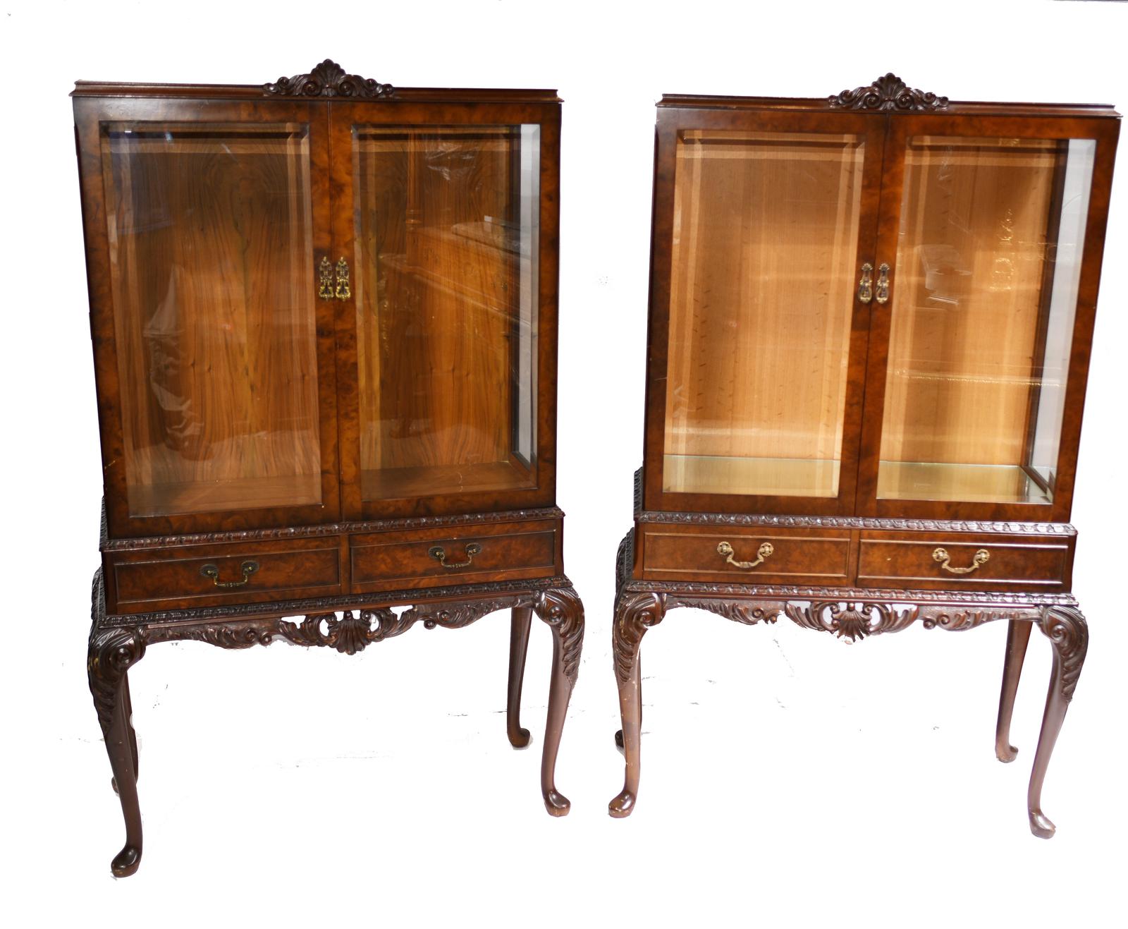 Pair of Antique Display Cabinets - Walnut Victorian Bookcases