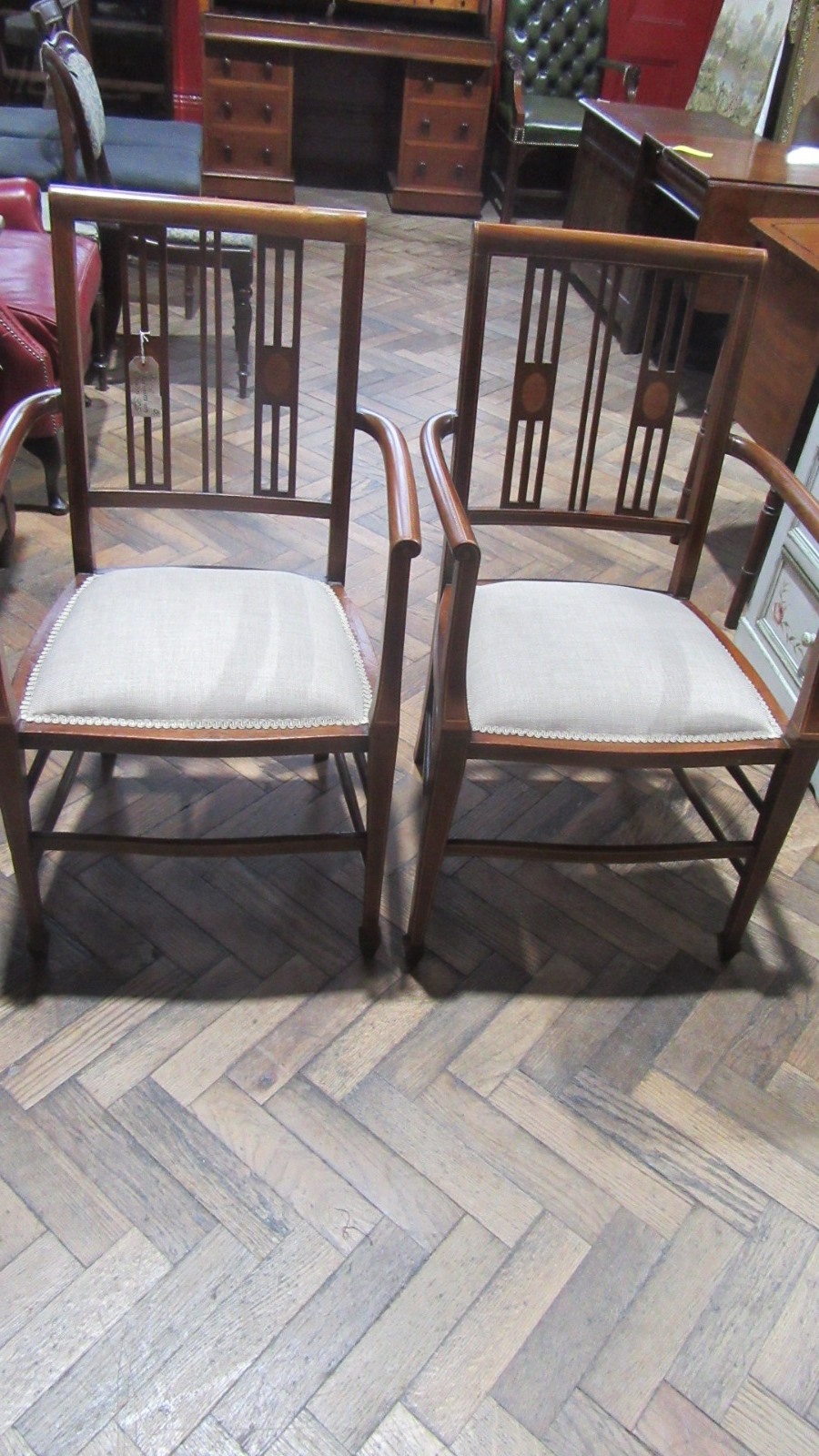 Pair of Antique Edwardian Inlaid Armchairs