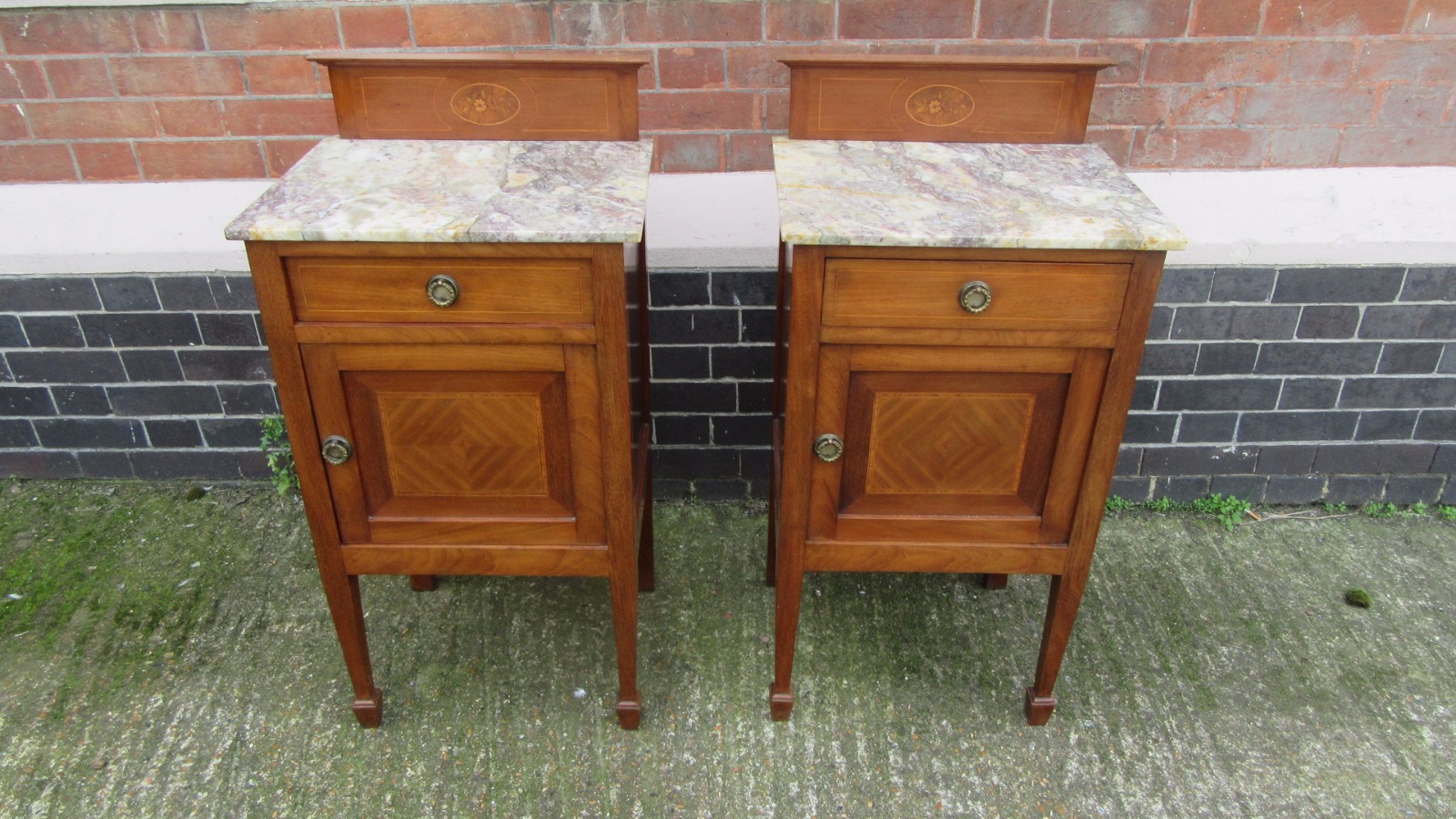 Pair of Antique Edwardian Inlaid Bedside Cabinets